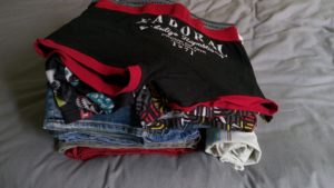 Maintenant laissez- moi vous prouver l’efficacité de ses différentes méthodes. J’ai donc rangé 7 sous-vêtements, 7 t-shirts, 3 shorts, 3 Jean et 7 paires de chaussettes et voilà le résultat: