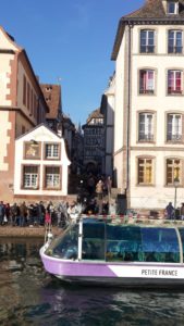 En prendre pleins les yeux, ou pas toujours … : Etant à pied le premier jour, nous avons surtout découvert les quartiers autour du centre-ville : Poincaré, Krutenau, Quartier de la gare, Petite France, Neudorf Ouest. Nous retiendrons surtout les petites ruelles avec les maisons typiques alsaciennes pleines de charme, les balades au bord de l’Ill, la Cathédrale Notre Dame de Strasbourg. Malheureusement, nous n’avons pas pu rentrer dans cette dernière et voir son horloge astronomique, car la queue énorme associées au froid nous ont vite dissuadé. Mais rien que de l’extérieur, elle offre un très beau spectacle !