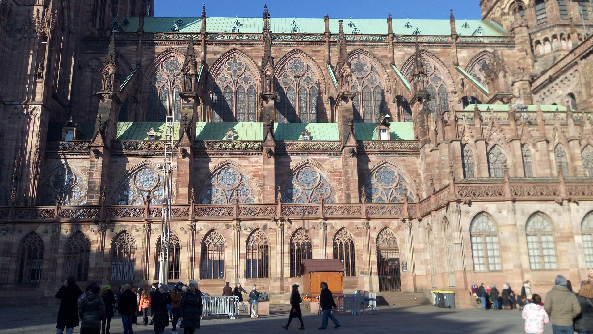 En prendre pleins les yeux, ou pas toujours … : Etant à pied le premier jour, nous avons surtout découvert les quartiers autour du centre-ville : Poincaré, Krutenau, Quartier de la gare, Petite France, Neudorf Ouest. Nous retiendrons surtout les petites ruelles avec les maisons typiques alsaciennes pleines de charme, les balades au bord de l’Ill, la Cathédrale Notre Dame de Strasbourg. Malheureusement, nous n’avons pas pu rentrer dans cette dernière et voir son horloge astronomique, car la queue énorme associées au froid nous ont vite dissuadé. Mais rien que de l’extérieur, elle offre un très beau spectacle !